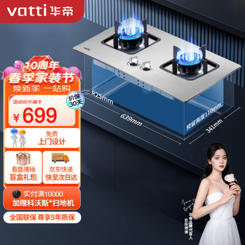 当前的位置: 首页 > 今日值得买 > 华帝(VATTI)燃气灶家用台式嵌入式 4.1kW不锈钢面板台嵌两用 双灶台灶具JZT-i10039A(天然气)