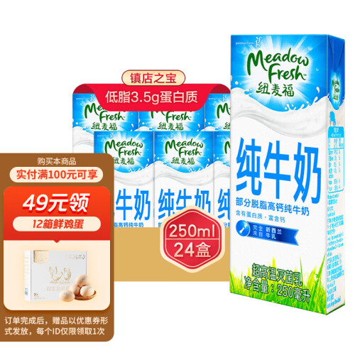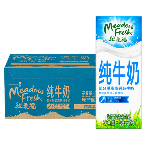 当前的位置: 首页 > 今日值得买 > 纽麦福(Meadow fresh)新西兰进口 3.5g蛋白 部分脱脂高钙纯牛奶250ml*24盒/箱 送礼佳选