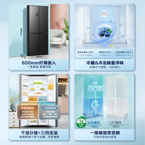 当前的位置: 首页 > 今日值得买 > 容声(Ronshen)离子净味465升十字对开四开门冰箱家用超薄可嵌入式变频一级能效无霜BCD-465WD18FP大容量