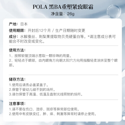 当前的位置: 首页 > 今日值得买 > POLA宝丽 黑BA重塑紧致眼霜26g 滋润保湿 重塑紧致 护肤礼物