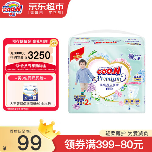 当前的位置: 首页 > 今日值得买 > 大王(GOO.N)花信风拉拉裤婴童尿不湿宝宝成长裤 拉拉裤 xxxl20+2片(18-35kg)