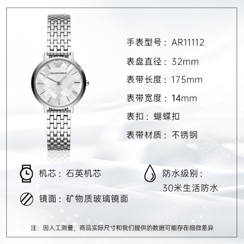 当前的位置: 首页 > 今日值得买 > 安普里奥·阿玛尼(Emporio Armani)手表女钢带贝母表盘石英女士腕表送女友生日礼物AR11112