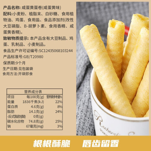 当前的位置: 首页 > 今日值得买 > 泓一 咸蛋黄蛋卷饼干零食小吃网红儿时酥心卷好吃的休闲食品整箱H 【400g*2箱】约32包