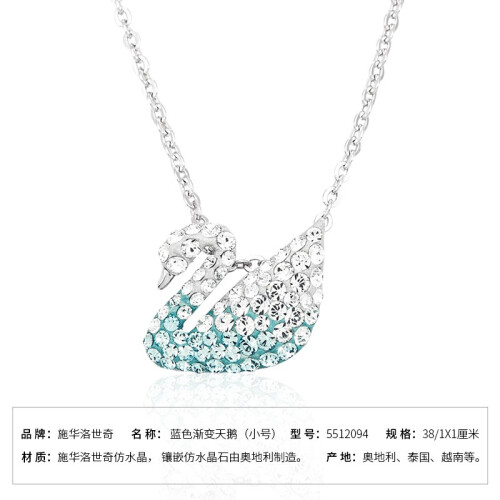 当前的位置: 首页 > 今日值得买 > 施华洛世奇(SWAROVSKI)新款经典天鹅系列 渐变色仿水晶项链 女锁骨链吊坠 生日礼物 小号渐变蓝天鹅5512094