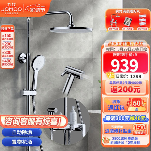 当前的位置: 首页 > 今日值得买 > 九牧(JOMOO)淋浴花洒套装增压喷枪自动除垢置物可升降淋浴器多功能花洒喷头 【自动除垢可置物喷枪款】36476