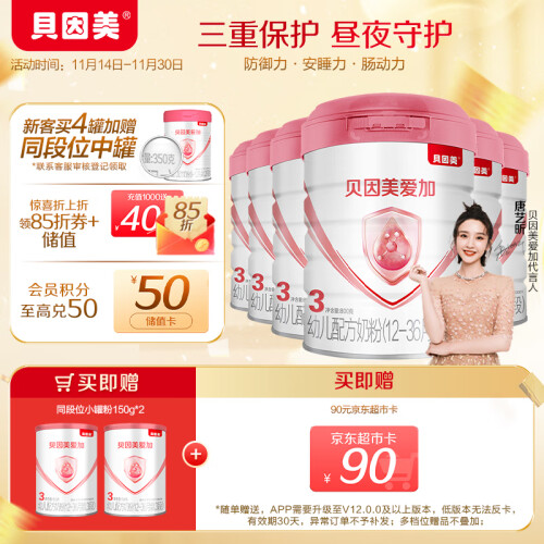 当前的位置: 首页 > 今日值得买 > 贝因美(Beingmate)爱加12-36月幼儿奶粉3段800g*6多罐装 免疫成长奶粉含乳铁蛋白