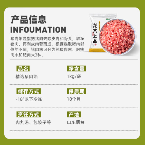 当前的位置: 首页 > 今日值得买 > 龙大肉食 猪肉馅500g*2袋 出口日本级 约70%瘦肉馅 包子饺子馅料 猪肉生鲜
