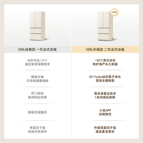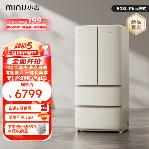 当前的位置: 首页 > 今日值得买 > 小吉(MINIJ)法式508L Plus超薄零嵌双变频一级能效法式多门家用客厅冰箱丨干湿分储变温低噪丨BCD-508WB Plus