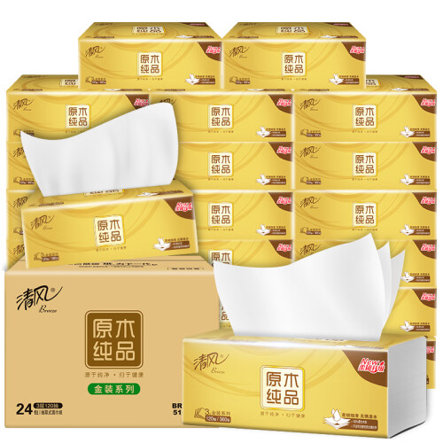 当前的位置: 首页 > 今日值得买 > 清风(APP)抽纸 原木金装3层120抽*24 亲肤无刺激 卫生纸 纸巾 餐巾纸 整箱