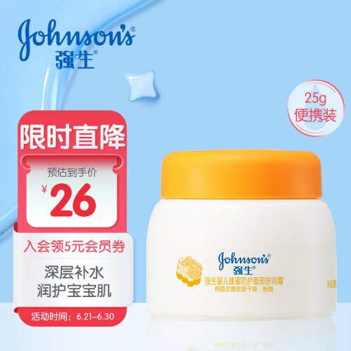 当前的位置: 首页 > 今日值得买 > 强生(Johnson)婴儿蜂蜜防皴霜25g 宝宝面霜新生儿童保湿滋润肤霜 补水护肤霜