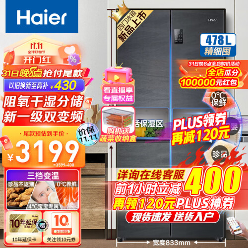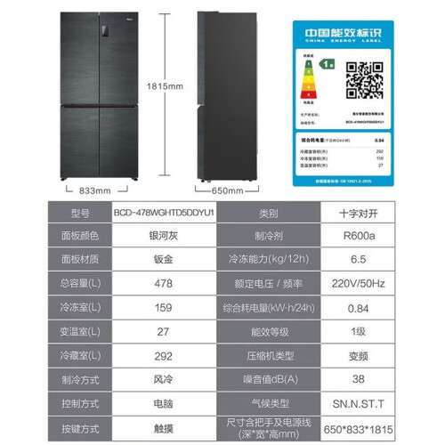 当前的位置: 首页 > 今日值得买 > 海尔(Haier)鲜派478升四开门干湿分储变频节能新一级十字对开门双开门多门纤薄冰箱 母婴专区 478L银河灰+1级双变频+三档变温+WIFI智控