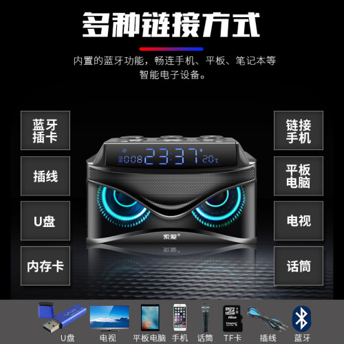 当前的位置: 首页 > 今日值得买 > 索爱(soaiy)S68 蓝牙音箱电脑音响 智能户外低音炮 闹钟收音机插卡便携式广场舞扩音器 炫酷黑