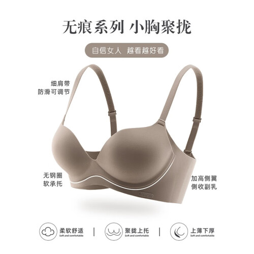 当前的位置: 首页 > 今日值得买 > PEANOJEAN无钢圈无痕内衣女小胸聚拢平胸显大收副乳防下垂文胸罩套装W8792 咖色套装 34/75B