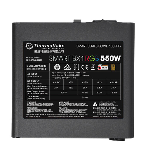 当前的位置: 首页 > 今日值得买 > Tt(Thermaltake)额定550W Smart BX1 RGB 550 电脑电源(80PLUS铜牌/256色灯效/日系主电容/智能温控风扇)