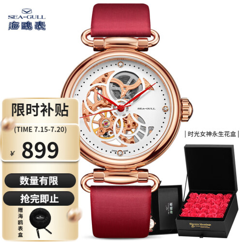 当前的位置: 首页 > 今日值得买 > 海鸥手表女士机械表时尚镂空时光女神系列防水国表 511.15.6002L(红带)