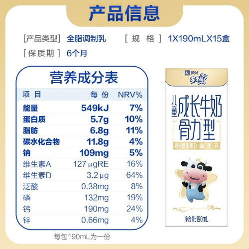 当前的位置: 首页 > 今日值得买 > 蒙牛 未来星儿童成长牛奶整箱营养早餐奶礼盒装 骨力型190ml×15包*2箱
