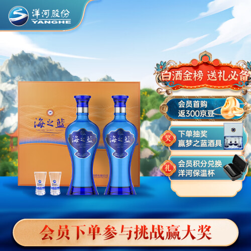 当前的位置: 首页 > 今日值得买 > 洋河 海之蓝 绵柔浓香型白酒 42度 480ml*2瓶 礼盒装