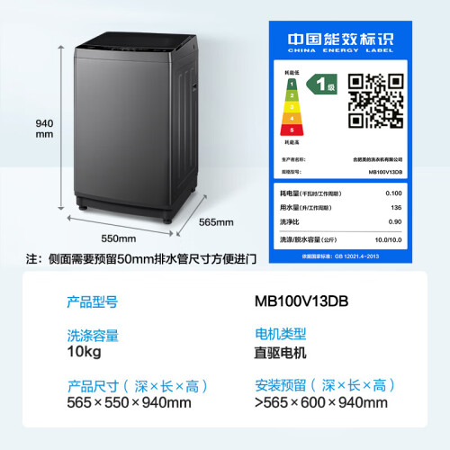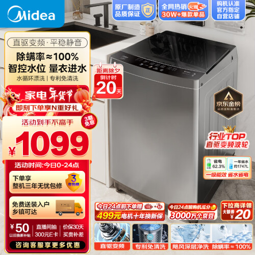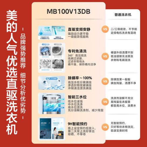 当前的位置: 首页 > 今日值得买 > 美的(Midea)波轮洗衣机全自动 V13DB 10公斤 直驱变频电机 健康除螨 免清洗 随心洗系列 MB100V13DB