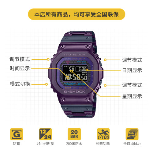 当前的位置: 首页 > 今日值得买 > 卡西欧(CASIO)G-SHOCK GMW-B5000卡西欧小方块运动男表防水手表【新年礼物】 GMW-B5000PB-6PRT太阳能