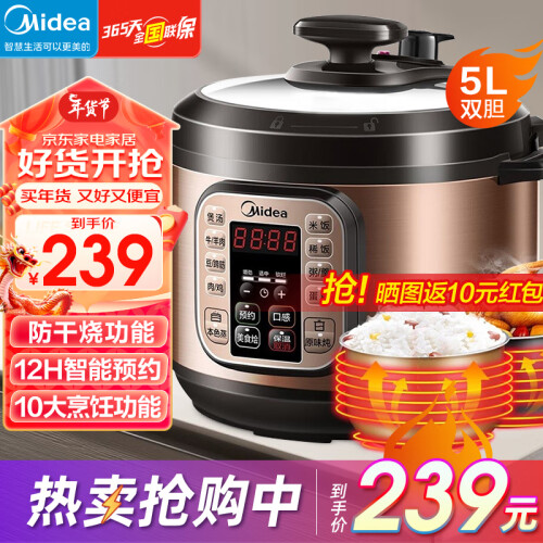 当前的位置: 首页 > 今日值得买 > 美的(Midea)电压力锅高压锅5L家用智能大容量电饭煲多功能压力锅可预约煲汤煮粥炖煮 【双胆大容量】 5L