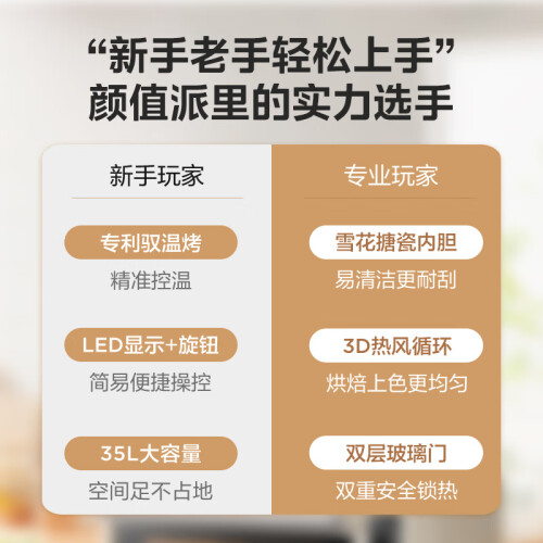 当前的位置: 首页 > 今日值得买 > 美的 遇见Q10-D系列烤箱 35L家用多功能电烤箱 双层玻璃门/搪瓷内胆/精准控温/热风烘烤 PT3530W-D