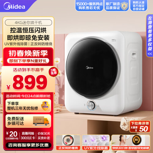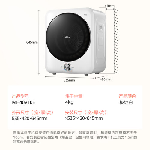 当前的位置: 首页 > 今日值得买 > 美的(Midea) 4公斤烘干机家用滚筒式干衣机小型烘衣机 衣物即烘即穿免安装 低温护衣 紫外线除菌 MH40V10E