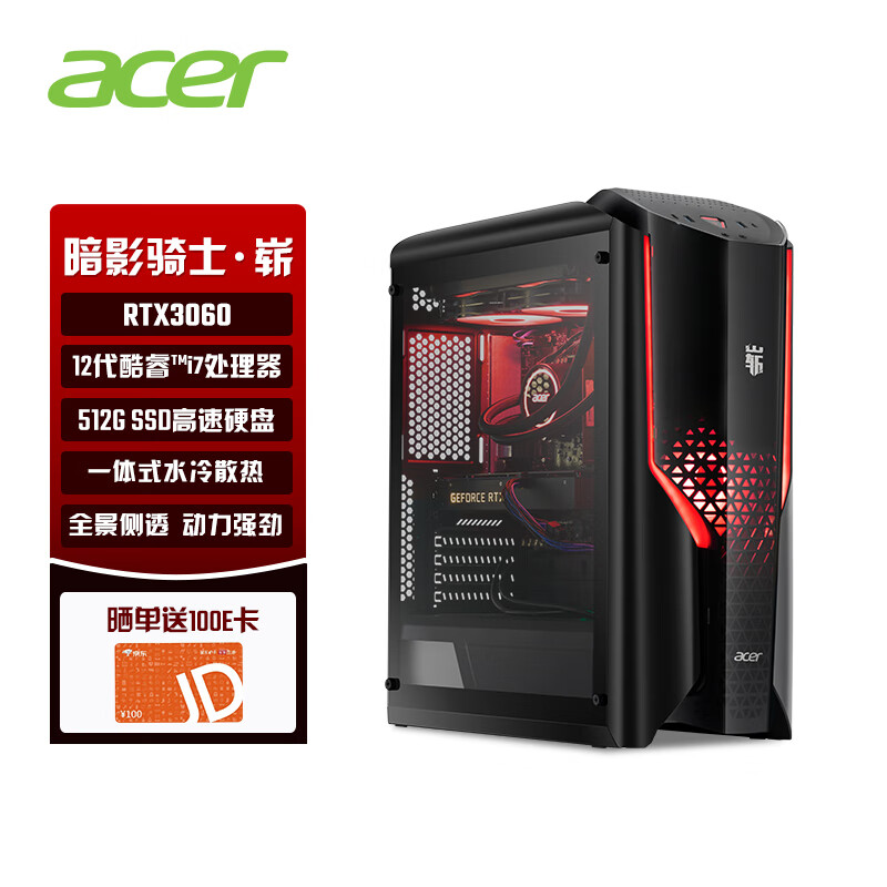 宏碁(Acer) 暗影骑士·崭 N97游戏电脑台式水冷主机(12代i7-12700 RTX3060 16G内存 512G固态 侧透水冷散热)京东 推荐人: 丁丁小编 发布时间:2022-11-12 18:00:42