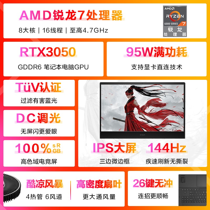 惠普(HP)暗影精灵8Pro 16.1英寸游戏笔记本电脑(AMD R7 6800H RTX3050 4G独显 16G 512GSSD 144Hz)京东 推荐人: 丁丁小编 发布时间:2022-09-07 15:21:38