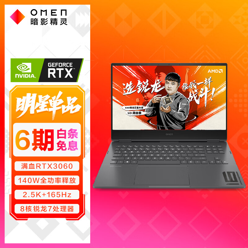 惠普(HP)暗影精灵8Pro 16.1英寸游戏本电脑(AMD R7-6800H RTX3060 6G独显 16G 512GSSD 2.5K 165Hz)京东 推荐人: 丁丁小编 发布时间:2022-09-07 15:27:23