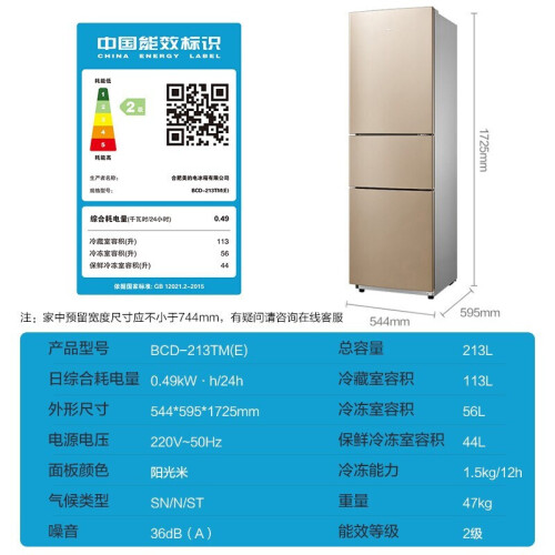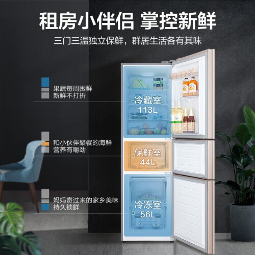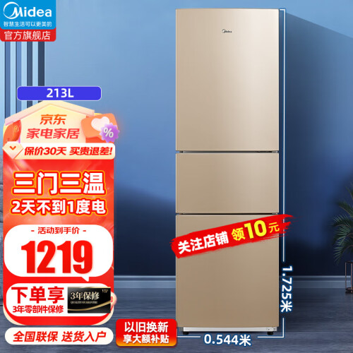 当前的位置: 首页 > 今日值得买 > 美的(Midea)冰箱 三门小型家用冷冻冷藏节能电冰箱租房宿舍用经济适用家电三门冰箱 213升 高性价比 BCD-213TM(E)阳光米