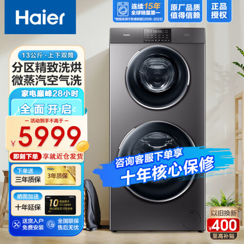 当前的位置: 首页 > 今日值得买 > 海尔双子滚筒洗衣机13公斤全自动变频复式双滚筒洗衣机双区同步分区洗护WIFI智能物联 海尔双子滚筒洗衣机洗烘一体13公斤+手机物联