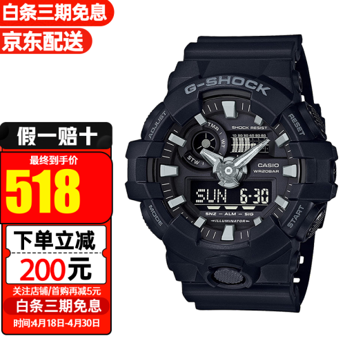 当前的位置: 首页 > 今日值得买 > 卡西欧(CASIO)男表G-SHOCK防水多功能潮流运动大表盘男表 黑武士GA-700-1B
