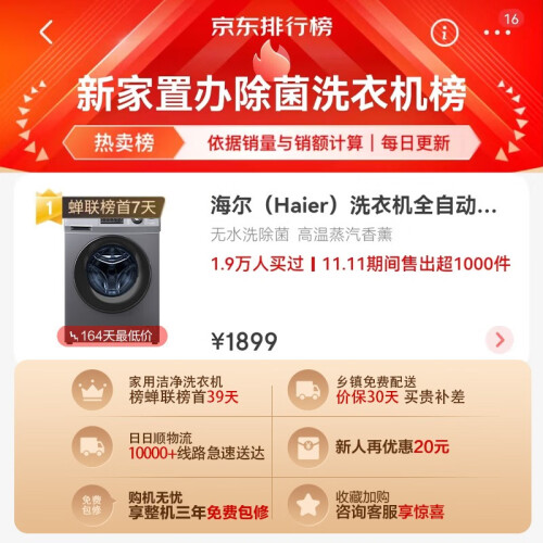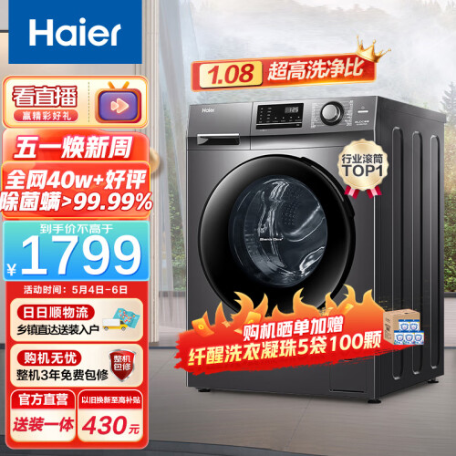 当前的位置: 首页 > 今日值得买 > 海尔(Haier)【1.08洗净比】滚筒洗衣机全自动10公斤大容量BLDC变频电机除菌除螨节能羽绒洗香薰筒自洁mate2s