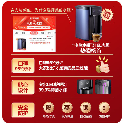 当前的位置: 首页 > 今日值得买 > 美的(Midea)电热水瓶电热水壶316L不锈钢热水瓶5L家用办公多段智能控温恒温水壶净甜开水壶烧水壶SP1A