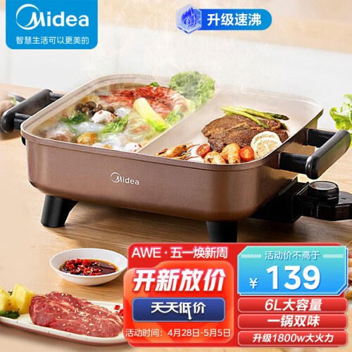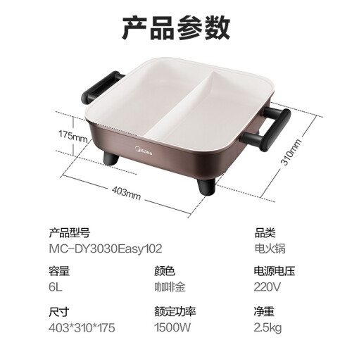 当前的位置: 首页 > 今日值得买 > 美的(Midea)电火锅 鸳鸯锅 火锅专用锅 电炒锅 电煮锅 电锅煎烤涮肉一体锅 多功能锅6L火锅锅 DY3030Easy102