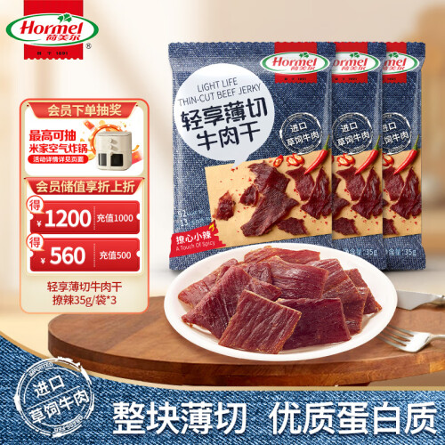 当前的位置: 首页 > 今日值得买 > 荷美尔(Hormel) 轻享薄切牛肉干撩辣35g/袋*3 健康轻食零食熟食香辣牛肉片肉脯