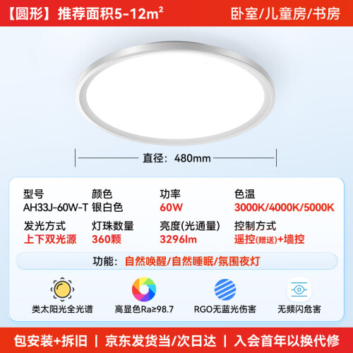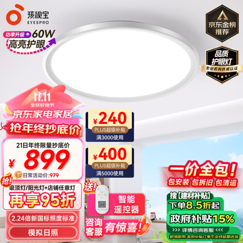 当前的位置: 首页 > 今日值得买 > 孩视宝护眼卧室吸顶灯全光谱客厅书房儿童房防蓝光智能led灯AH33J-60W-T