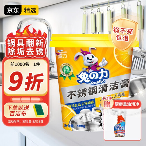当前的位置: 首页 > 今日值得买 > 兔の力不锈钢清洁膏剂 厨房清洁剂 锅底去污膏黑垢去除剂烧焦油污 500g 1瓶 【配方升级】
