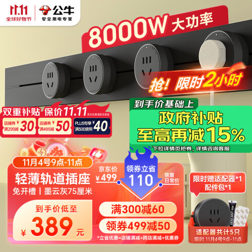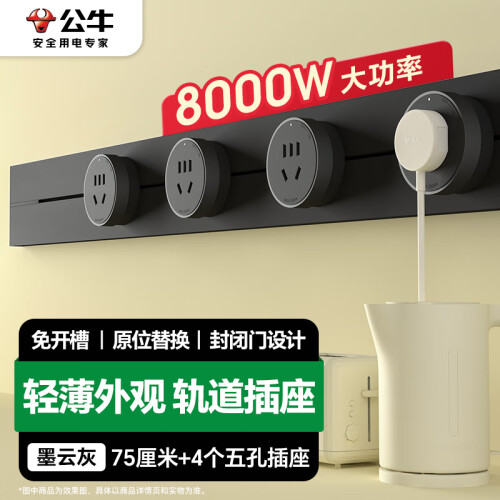 当前的位置: 首页 > 今日值得买 > 公牛(BULL)明装 轨道插座 大师轻薄款GB3可移动墙壁插座壁挂式插座 免开槽 75厘米轨道+4个五孔墨云灰