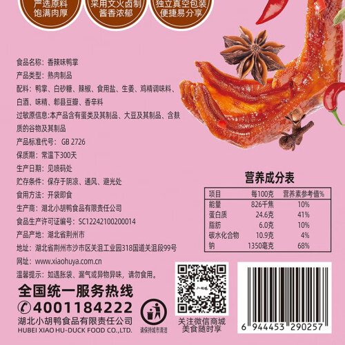 当前的位置: 首页 > 今日值得买 > 小胡鸭任选5件柠檬酸辣味无骨鸡爪去骨鸭掌多口味追剧下酒卤味休闲零食 香辣味有骨鸭掌118g
