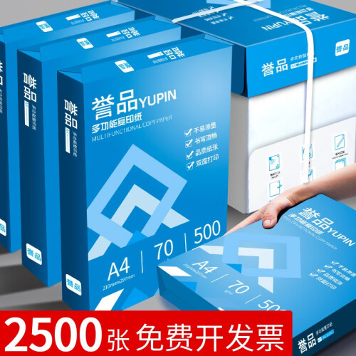 当前的位置: 首页 > 今日值得买 > 誉品(YUPIN)a4纸 70g打印纸 整箱A4复印纸 80g加厚多功能双面打印办公白纸 70g整箱5包共2500张【蓝色包装】