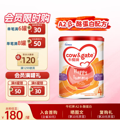当前的位置: 首页 > 今日值得买 > 牛栏(Cow&Gate)儿童奶粉 A2 β-酪蛋白 4段(3岁以上) 900g