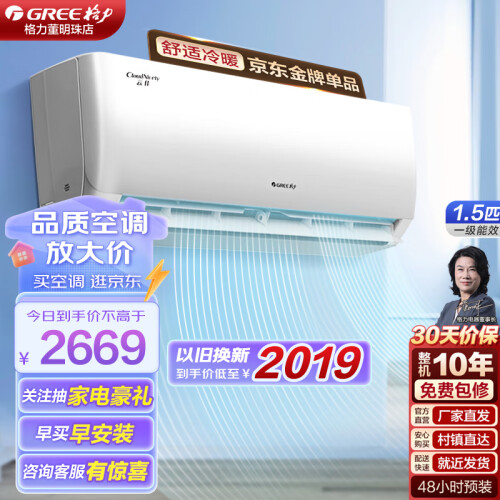当前的位置: 首页 > 今日值得买 > 格力(GREE)空调 1.5匹 云佳 新一级能效 变频冷暖智能 自清洁 壁挂式卧室空调挂机 家电国家补贴20% 政府补贴 1.5匹 一级能效 适用【16-20㎡】 KFR-35GW/NhGc1B