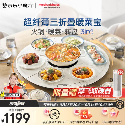 当前的位置: 首页 > 今日值得买 > 摩飞电器(Morphyrichards)三折叠暖菜板饭菜保温板 家用圆形多功能火锅电陶炉餐桌加热转盘桌面暖菜垫保温垫热菜板MR8307