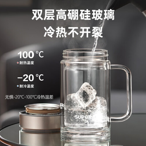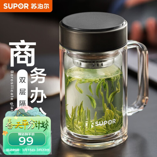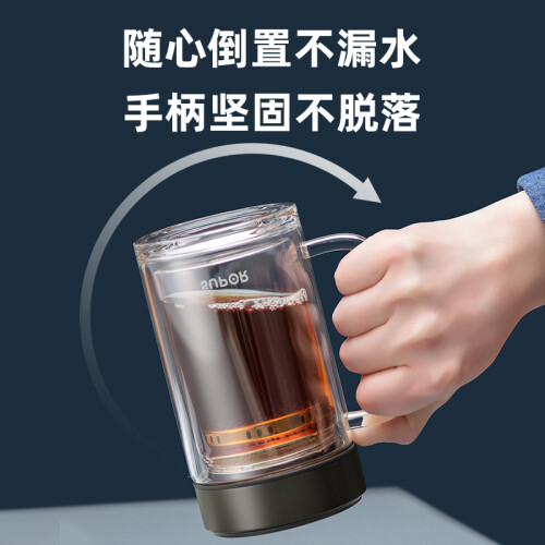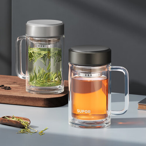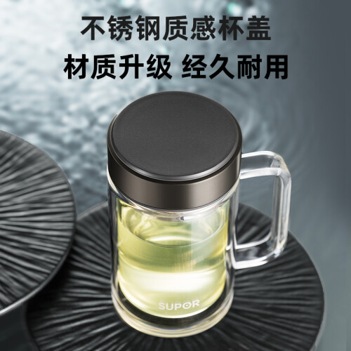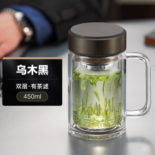 当前的位置: 首页 > 今日值得买 > 苏泊尔(SUPOR) 双层玻璃杯茶杯耐热防烫带手柄水杯商务办公男士过滤带盖杯子 乌木黑- 450ml