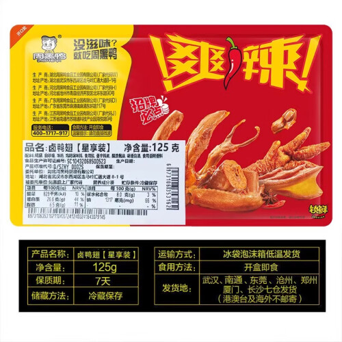 当前的位置: 首页 > 今日值得买 > 周黑鸭 锁鲜卤鸭翅125g 武汉特产 即食卤味 零食小吃 源头直发包邮