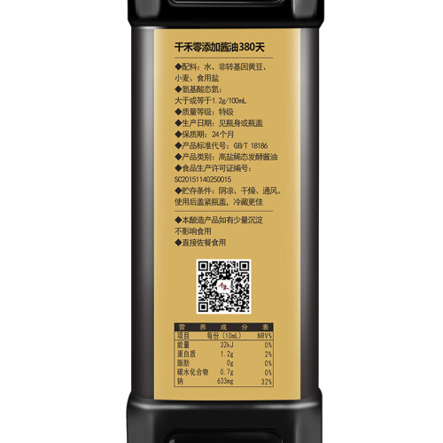 当前的位置: 首页 > 今日值得买 > 千禾 御藏本酿 380天酱油 1L*2【0添加 特级生抽】炒菜提鲜