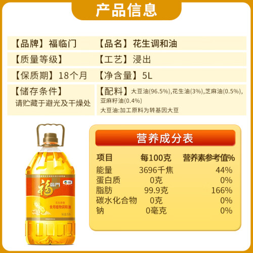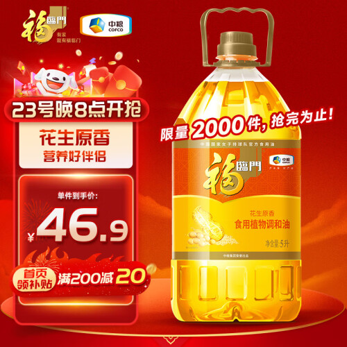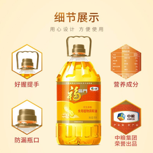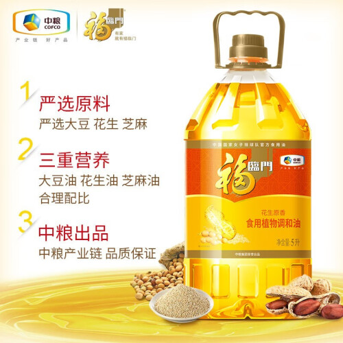 当前的位置: 首页 > 今日值得买 > 福临门 食用油 花生原香食用植物调和油5L 中粮出品 新老包装随机发货