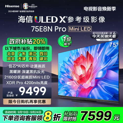 当前的位置: 首页 > 今日值得买 > 海信电视75E8N Pro 75英寸 ULED超画质 DeepSeek AI智能电视 2160分区Mini LED 以旧换新家电国家补贴
