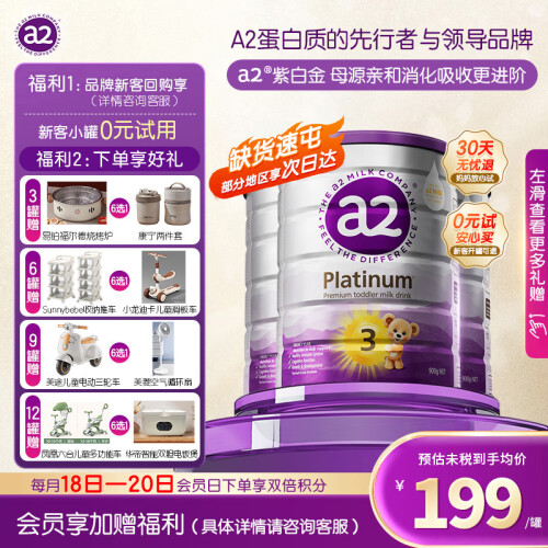 当前的位置: 首页 > 今日值得买 > a2奶粉澳洲紫白金婴幼儿配方牛奶粉新西兰奶源原装进口 3段(12-36月)900g 3罐 A2